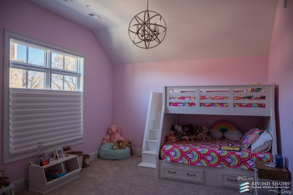 If you’re interested in less harsh natural light, the Duolite® option may be perfect for your nursery. These shades combine light-filtering or sheer front shade with a room-darkening back panel that both roll on a single roller. Silhouette® Window Shadings are also a great choice for a beautifully filtered controlled light, giving your nursery a soft and elegant ambience. Light filtering window treatments perfect for your nursery include: